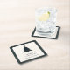 Modern Christmas paper coasters featuring a timeless design with a Christmas tree with a muted navy blue and green plaid pattern along with the greeting, "Merry Christmas". Use the template to add your family name or event title.