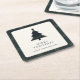 Elegant Navy Blue and Green Plaid Christmas Tree Square Paper Coaster