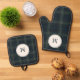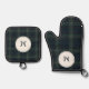 Elegant Navy Blue and Green Plaid Monogram Oven Mitt & Pot Holder Set