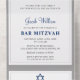 Elegant Navy Blue and Grey Bar Mitzvah All in One Invitation