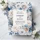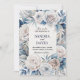 This stunning design features a rich navy blue background adorned with delicate ivory florals and accented with shimmering silver details. Perfect for a sophisticated and timeless wedding, this invitation captures the essence of elegance and refinement, setting the perfect tone for your special day. Ideal for couples seeking a classic and luxurious invitation that exudes charm and grace.