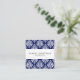 Elegant Navy Blue and White Damask Pattern Square Business Card