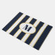 A simple design of navy blue, white and gold stripes with a gold rimmed monogram.