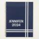 Elegant navy blue and white stripes design planner