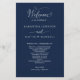 Elegant navy blue Wedding program with beautiful modern handwritten calligraphy details. Front with wedding ceremony details, back with wedding party names and thank you message for your guests. Add your details using the template text boxes provided and if needed, you may select "Edit using the design tool" (with the button located at the end of the template text boxes) and make changes to your text's positioning, size, or even style to fit your details best. This design in a navy blue background colour and white text.