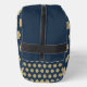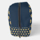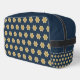 Modern elegant women's Dopp kit with navy blue background and beige geometric floral pattern. This Dopp kit, fully customizable, is perfect for make up and daily toilery storage. Alternatively, it can also be used to store other items such as daily gratitude notes or craft and art supply.