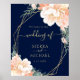 Elegant Navy Blue Blush Gold Peach Floral Wedding Poster