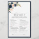 Modern, elegant bridal shower game "What's on Your Phone" featuring a bouquet of navy blue and blush pink flowers, bordered in navy blue. Personalize your questions in soft off-black, accented with beautiful modern hand lettered calligraphy. Part of a co-ordinated suite. View suite here: https://www.zazzle.com/collections/navy_blue_blush_floral_watercolor_bridal_shower-119055669272624939 Contact designer for matching products. Copyright Anastasia Surridge for Elegant Invites, all rights reserved.