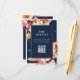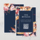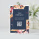 Modern fall wedding enclosure cards with elegant boho fall floral accents of dahlia flowers and autumn botanical leaves, minimalist typography design on navy blue background. Add your own personalized QR code with custom wedding website url.