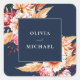 Elegant Navy Blue Boho Chic Floral Wedding Square Sticker