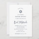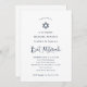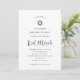 This simple and elegant design features navy blue calligraphy and modern matching text on a crisp white background. A matching Star of David makes this perfect for your religious Bat Mitzvah.