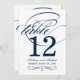 NOTE: Each table number card must be customized and individually added to the shopping cart. Elegant card includes a flourished monogram with navy blue calligraphy and scroll design accents. Two sided design.