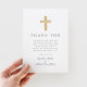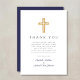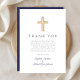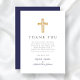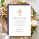 Elegant Navy Blue Cross Boy Baptism Thank You Card