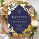 Elegant Navy Blue Floral Boy Baptism Gold Foil Invitation.