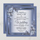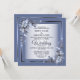 Elegant Navy Blue Floral Framed Silver Wedding Invitation