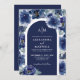 Elegant Navy Blue Floral Wedding Invitation