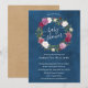 Elegant Navy Blue Floral Wreath Baby Shower Invitation