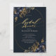 Elegant navy blue flowers with gold leaves on navy blue background. Beautifully invitation that can be customized with your name.Select the "customize" button to change the font style,colour and size.