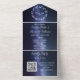 Navy blue, galaxy, celestial, constellation, minimal, chic, elegant, rustic, modern folded marriage, QR code Wedding all in one invitations. Trifold, budget set. You can personalized it with your own details.
