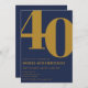 Elegant Navy Blue & Gold 40th Birthday Invitation