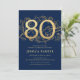 Elegant Navy Blue Gold 80th Birthday Invitation