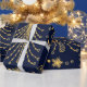 Elegant Navy Blue Gold Christmas Tree Star Pattern Wrapping Paper