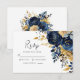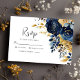 Elegant Navy Blue Gold Floral Wedding RSVP Card