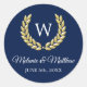 Elegant Navy Blue & Gold Laurel Monogram Wedding Classic Round Sticker