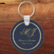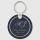 Elegant Navy Blue Gold Monogram Script Wedding Keychain
