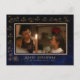 Elegant Navy Blue Gold Pattern Photo Holiday Postcard