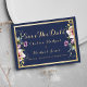 Elegant navy blue gold pink floral Save The Date