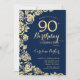 Elegant Navy Blue Gold Roses 90th Birthday Invitation