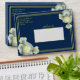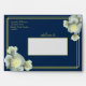 Elegant Navy Blue Gold Script Frame White Rose Envelope
