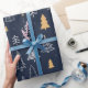 Elegant Navy Blue & Gold Tree Christmas Wrapping Paper
