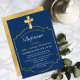 Elegant Navy Blue Golden Cross Boys Baptism Invitation