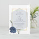 Elegant Navy Blue Golden Frame Floral Wedding Invitation