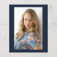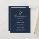 An elegant navy blue graduation ceremony card. The text details and image can be personalized.