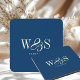Elegant navy blue initial wedding couples coaster
