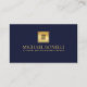 This elegant business card features a sophisticated navy blue leather-textured illustration and your business logo over faux gold overlay, offering a premium and professional aesthetic. Your name, profession, or firm name is prominently displayed in luxurious gold colour lettering, ensuring a timeless and memorable presentation. The combination of the textured background and gold accents exudes elegance and authority. This business card design is ideal for professionals who seek to convey a sense of trust, reliability, and sophistication. It is suitable for a wide range of industries, including: Estate Planners, Attorneys
