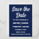 Modern, elegant, navy blue, QR Code, photo, silver foil, Wedding Save the Date. You can personalize it with your own details.