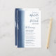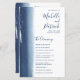 Modern and creative wedding program featuring a simple design with a navy blue watercolor brushstroke on the left side, over a white background. Add your ceremony events to the front and your wedding party to the back. This unique design is great for an artistic couple. These cheap wedding programs are printed on sheets of paper for a budget friendly option.