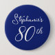Elegant Navy Blue Monogram 80th Birthday Party Button Pin