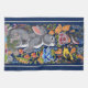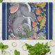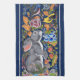 The elegant yet fun intricate artwork on this towel features a cute grey bunny rabbit and two birds in a colourful medley of Jacobean-inspired flowers. The background is a pretty navy blue with light grey side stripes as an accent. This artwork was originally hand painted on ceramic tile with underglazes, glazed and kiln fired, giving the painting a rich depth. Perfect for any rabbit lover or anyone who appreciates fun accessories in their blue kitchen! Whimsical, original, unique artwork & design by Tuzi Williams.