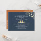 Elegant, modern, bohemian terracotta and navy blue rehearsal dinner invitation with love birds, faux gold floral lace and simple calligraphy script.