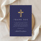 Elegant Navy Blue Religious Cross Confirmation Thank You Card