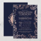 Elegant Navy Blue Rose Gold Floral Graduation Invitation