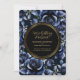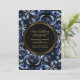 Elegant Navy Blue Roses Floral & Gold Black Frame Invitation