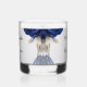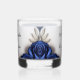 Elegant Navy Blue Roses & Silver Glitter Wedding Whiskey Glass