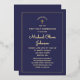 Elegant Navy Blue Script First Communion Gold Foil Invitation.