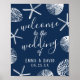 Elegant Navy Blue Seashells Beach Wedding Welcome Poster